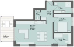 | Kochen, Essen, Wohnen | 32,80 m² |